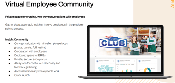 Becca Mayers, VP of product marketing at Alida, says there were some great use cases of employee communities being used to both improve EX and potentially improve business outcomes. “Giving employees a safe space to share concerns and ideas helps to build empathy and trust. Furthermore, empowering employees to solve problems can lead to opportunities for innovation.” Mayers adds, “Employee resource groups (ERGs) are a great community use case for Diversity, Equity & Inclusion (DE&I) efforts where we see companies being able to leverage the data they have coming in about a particular concern, that is important to a particular group of people who have raised their voices. People are saying – this is a problem; this isn’t working for me. Helping them form a community where they can have deep and ongoing conversations on specific pain points helps with the whole co-creation of a workplace goal, which is a positive for both employees and companies.”