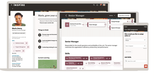 - Enhanced Team Skills Center: Managers and leaders can monitor skills needs and gaps across their teams and organization, assign specific skills needed to achieve business objectives, and automatically add them to every employee’s Oracle Grow experience.